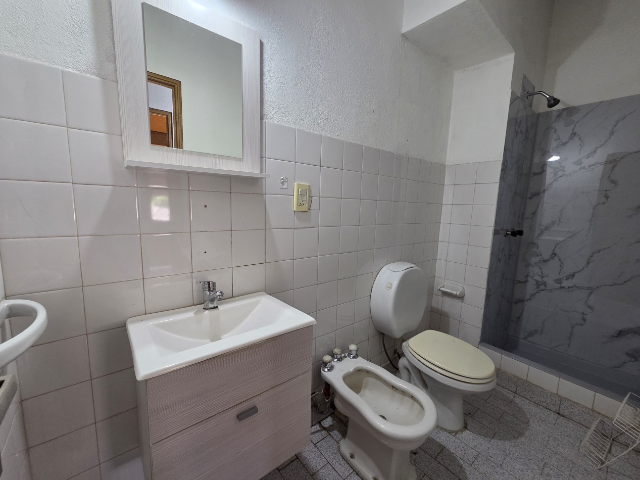El baño es completo, equipado con ducha, revestimientos cerámicos de fácil mantenimiento, vanitory con espacio de guardado, espejo y buena ventilación, lo que garantiza confort y practicidad para el uso diario.