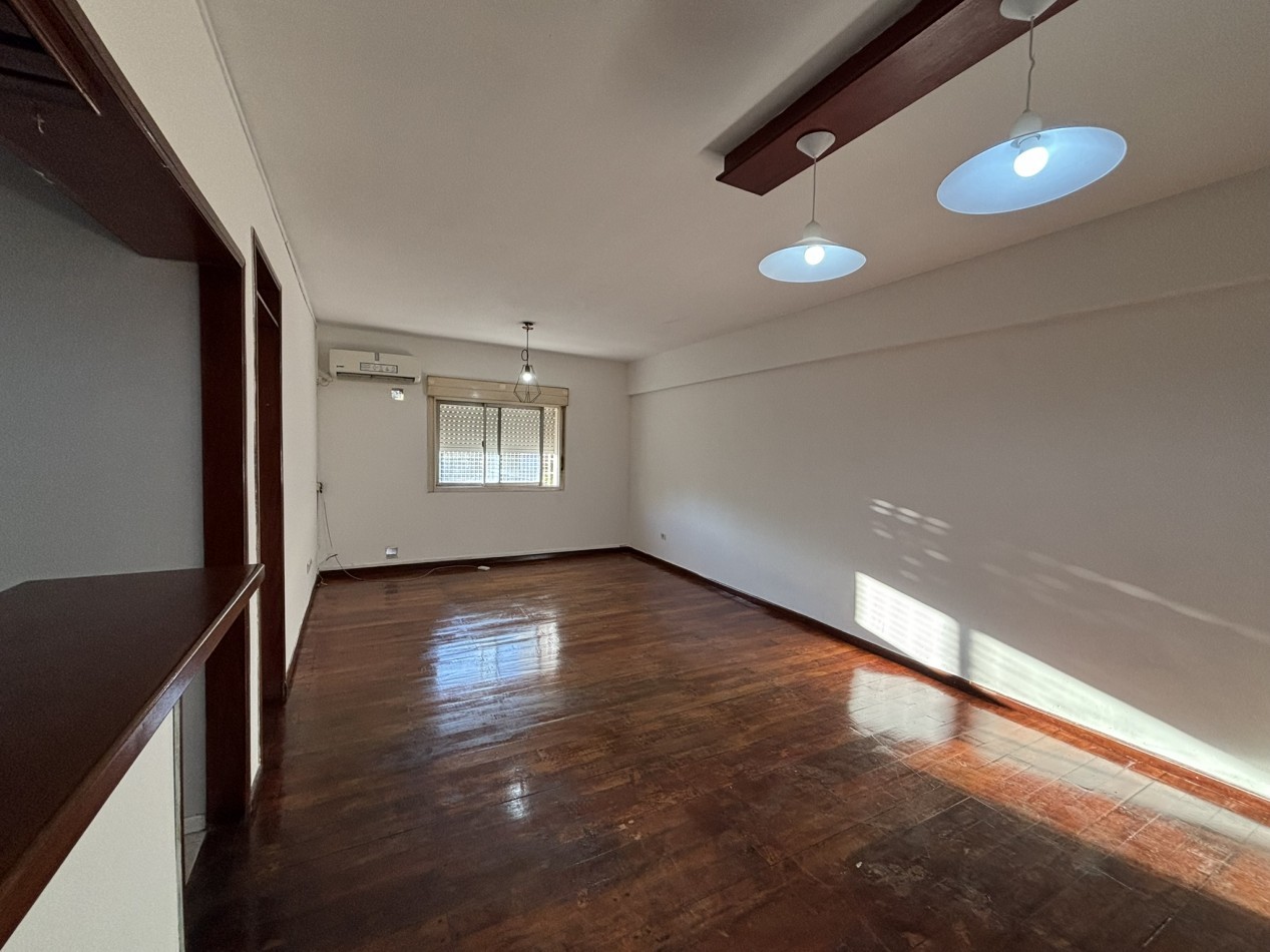 La propiedad cuenta con 3 dormitorios con placares, ideal para familias o para quienes necesitan un ambiente extra como escritorio. El living comedor tiene piso de madera, aire acondicionado y una luz natural increíble que hace que el espacio se sienta amplio y cálido a la vez.